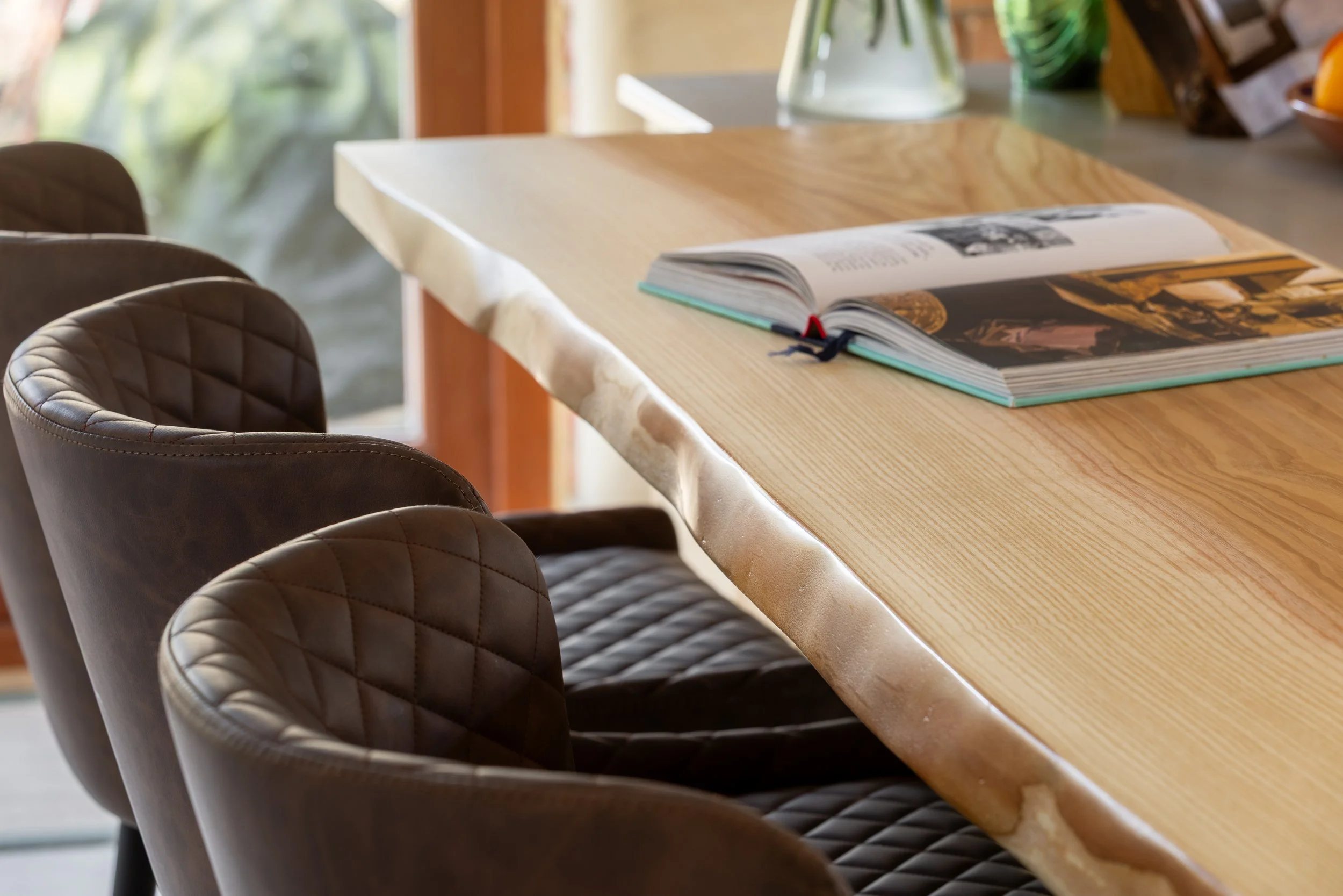 A classic for a reason. Solid oak furniture offers natural warmth, beautiful grain variation and serious durability. We often recommend it for bespoke kitchen worktops, shelving and freestanding pieces. Its golden tone works beautifully in both traditional and modern homes. Plus, it only gets better with age.